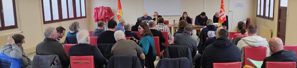 Ce vendredi 23 février 2024, les 2 organisations syndicales étaient réunies en congrès. Nous étions une trentaine de syndiqués représentant les différents métiers du CD et du FDE pour valider la modification de nos statuts et pour ne faire plus qu’une seule organisation syndicale CGT.