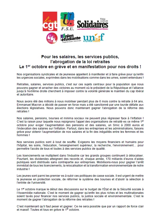 Double utilité de se mobiliser le 1er octobre Double utilité de se mobiliser le 1er octobre