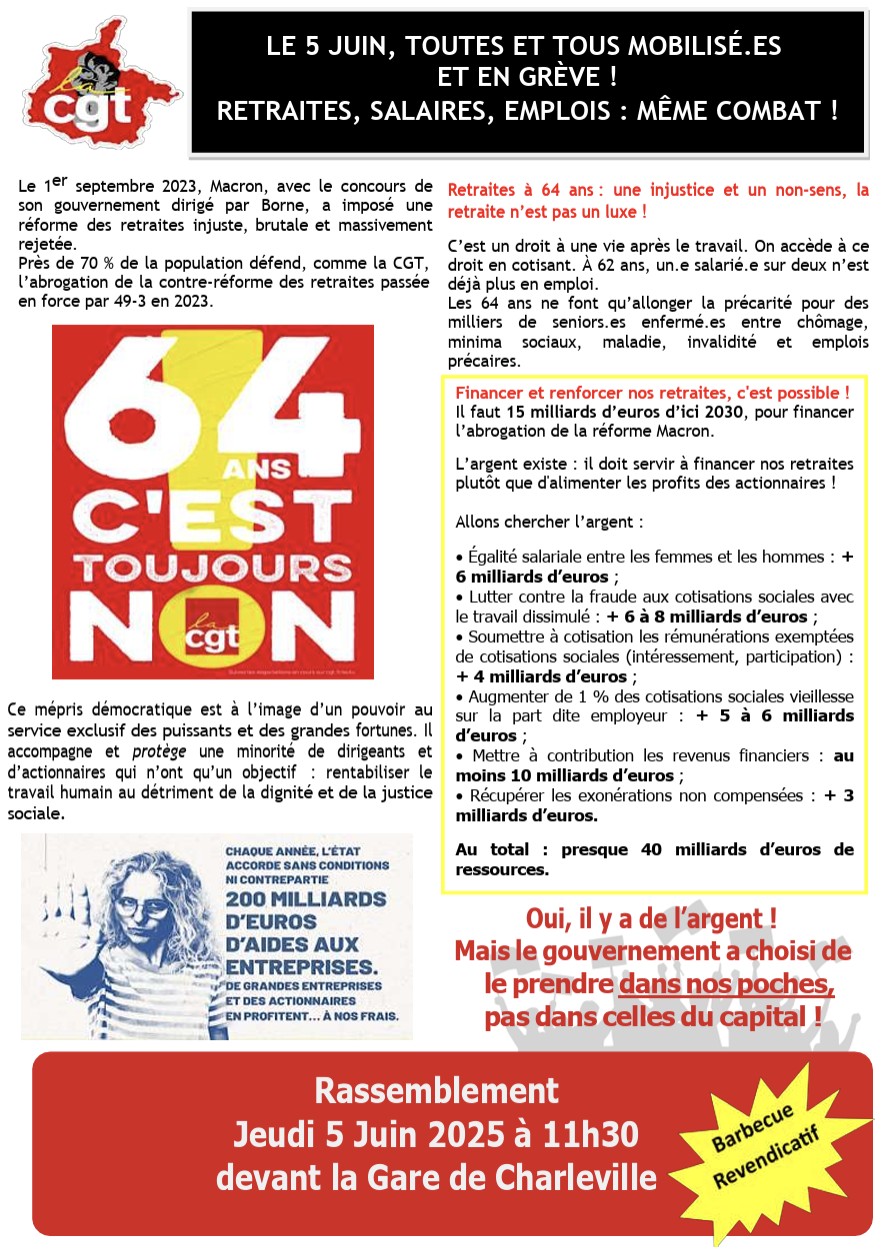 Les agents grévistes sont attendus nombreux devant l’Hôtel du Département jeudi 5 juin de 9h à 11h. Celles et ceux qui le souhaitent pourront rejoindre la manifestation-BBQ de l’Union Départementale CGT sur le parvis de la gare : y aura d’la merguez !