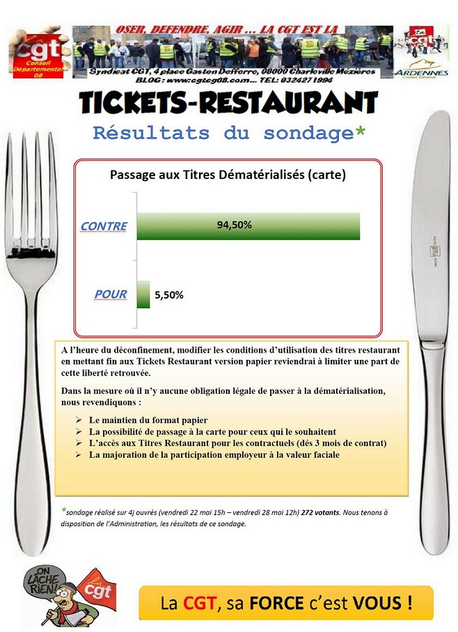 Tickets Restaurant – Résultats du sondage et revendications !