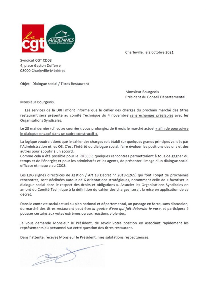 Tickets Resto: la CGT interpelle le Président