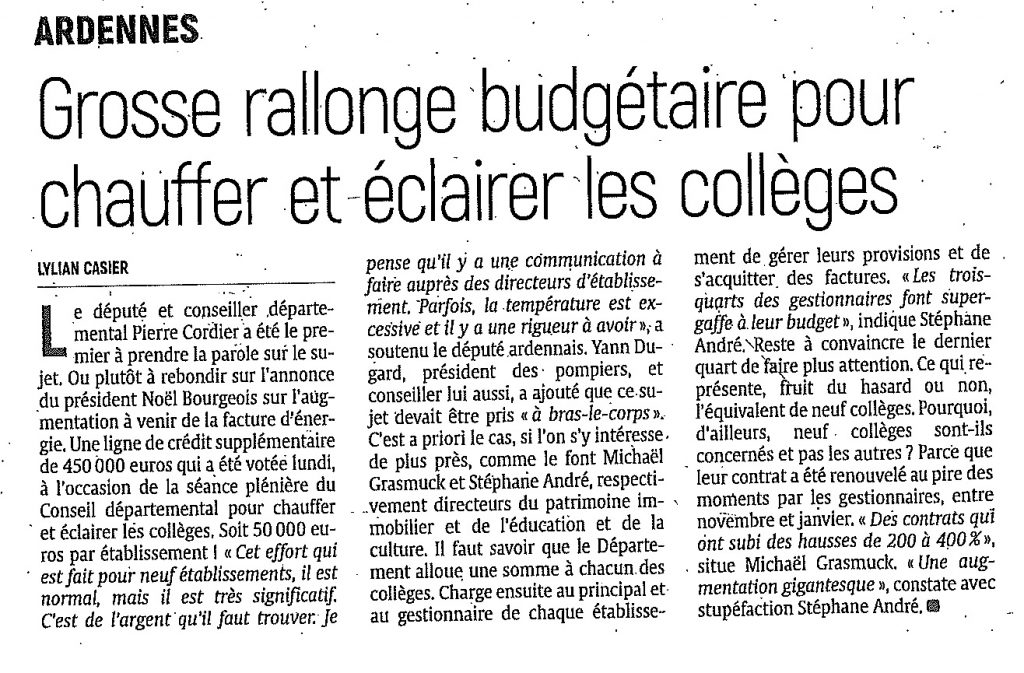 Le Député Cordier explique que « la température des collèges est excessive et que les Directeurs d’établissement doivent être plus rigoureux. »