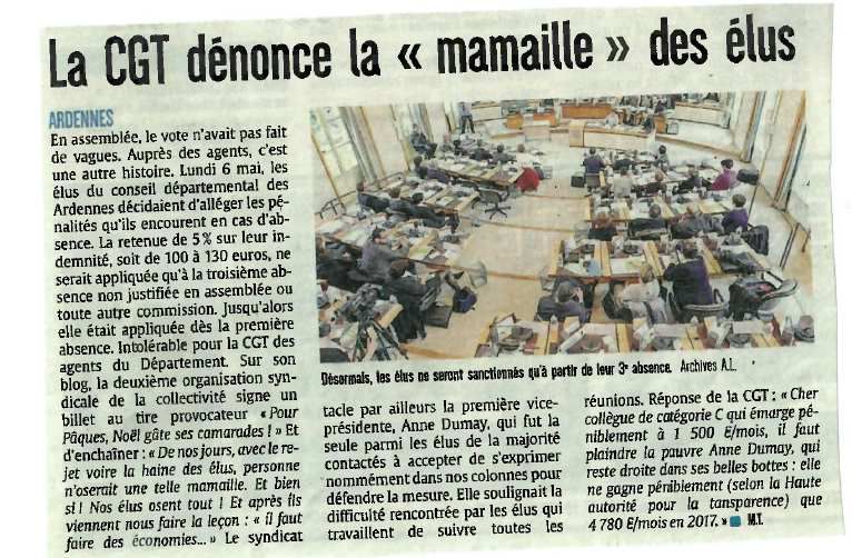 On comprend que l’Assemblée ne souhaite pas communiquer le nombre de jours d’absence de nos élus, étonnant non !Restez calme chers collègues du CD et [...]