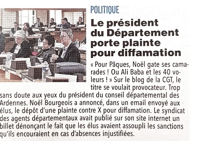 Noel Bourgeois porte plainte contre X pour diffamationPiqué au vif !Les Ardennais apprécieront….Étrangement, le temps de réaction est beaucoup plus lo[...]